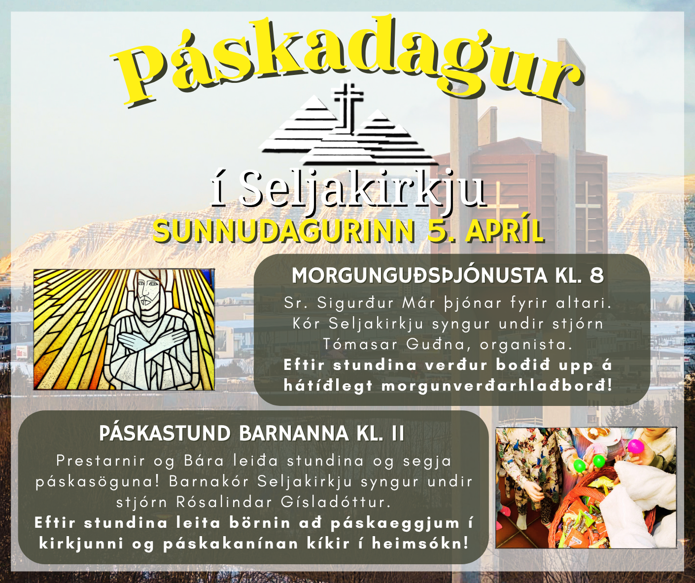 Nú gengur sigurhátíðin sjálf í garð, páskarnir, og því fögnum við í Seljakirkju! Nóg verður í boði í kirkjunni á páskadag, þann 5. apríl. Dagskrá dagsins verður með þessum hætti: