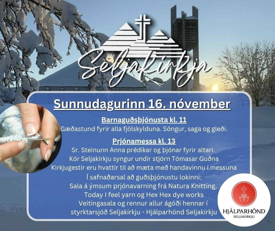 Að messu lokinni verða verslanirnar Natura Knitting, Today I feel yarn og Hex Hex dye works með ýmsan prjónavarning til sölu í safnaðarsal kirkjunnar