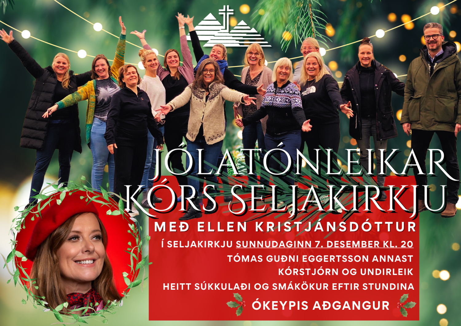 Jólatónleikar kórs Seljakirkju hefjast klukkan 20, sunnudaginn 7. desember. Þar syngur kór Seljakirkju aðventu- og jólalög undir stjórn Tómasar Guðna Eggertssonar. Sérstakur gestur tónleikanna er Ellen Kristjánsdóttir, sem syngur sín vinsælu jólalög.
