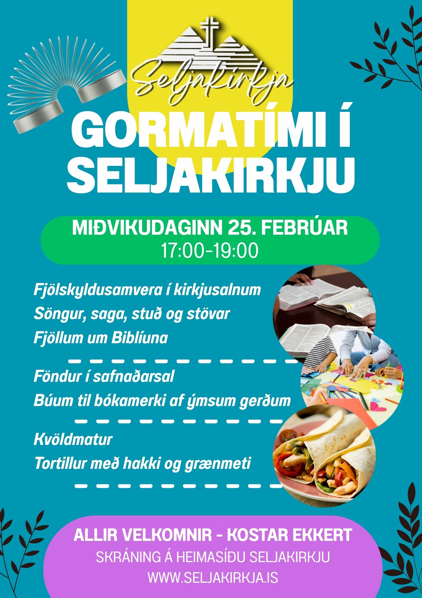 Næsti Gormatími verður miðvikudaginn 25. febrúar kl. 17:00