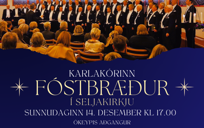 Næsta sunnudag, 14. desember, er nóg um að vera í Seljakirkju. Aðventusunnudagaskóli verður kl. 11, guðsþjónusta klukkan 13 og loks árlegir aðventutónleikar Fóstbræðra kl. 17! Karlakórinn Fóstbræður ...
