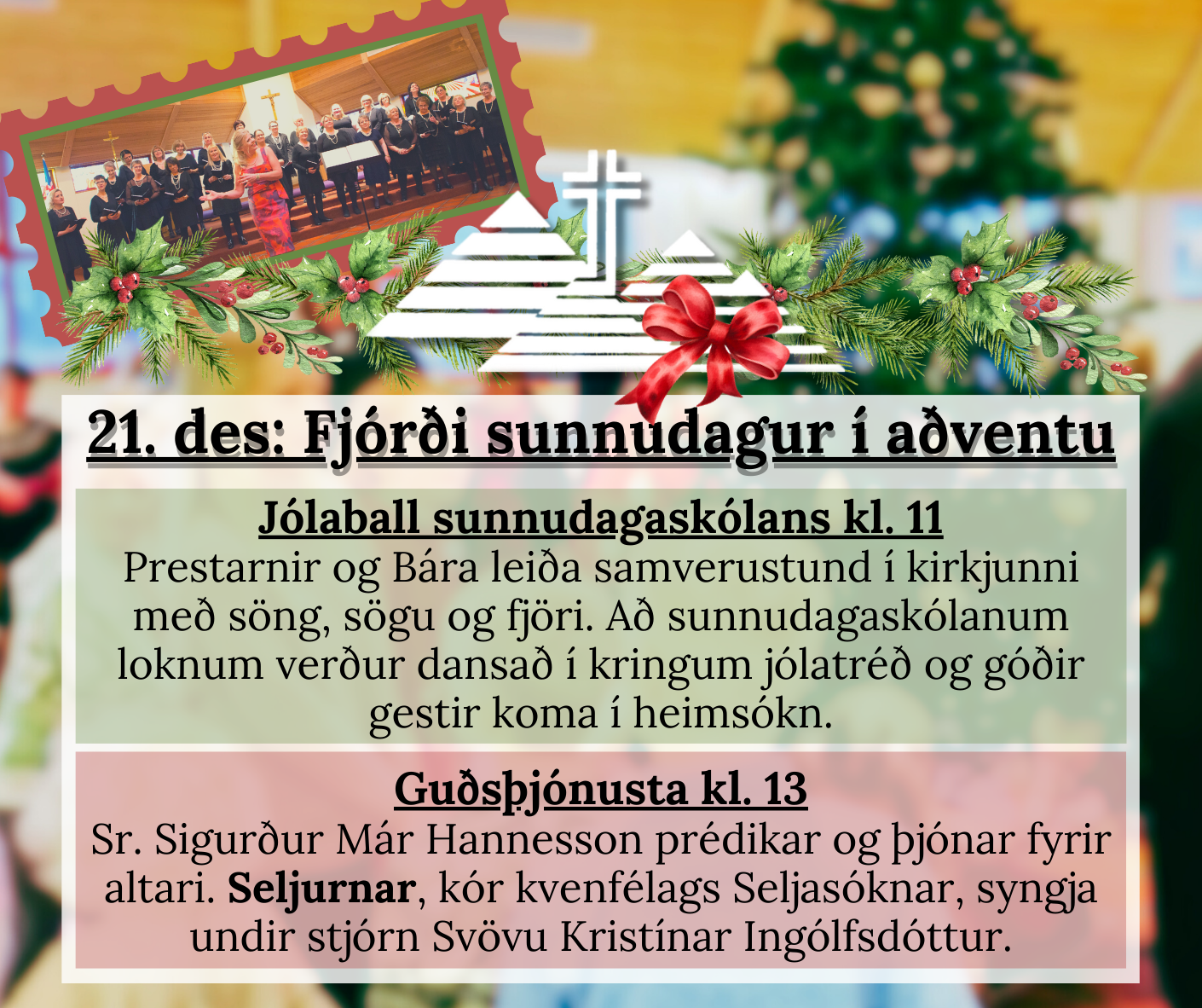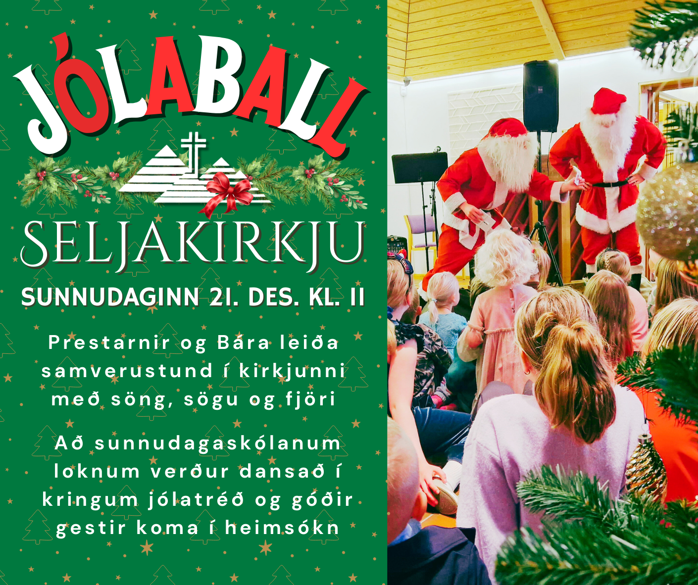 Jólaball sunnudagaskólans og Seljurnar syngja við guðsþjónustu