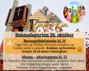 Við ætlum að taka forskot á sæluna næsta sunnudag og mæta í búningum í sunnudagaskólann! Helgihald sunnudagsins 26. október ...