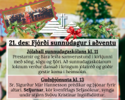 Þá heldur aðventudagskráin okkar áfram, en að vanda verður nóg um að vera næsta aðventusunnudag. Dagskrá fjórða sunnudags í ...